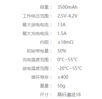 • 產(chǎn)品描述:18650/3.2V/3500mAh/13A電芯